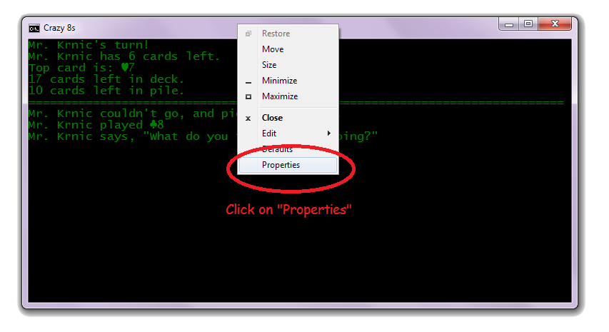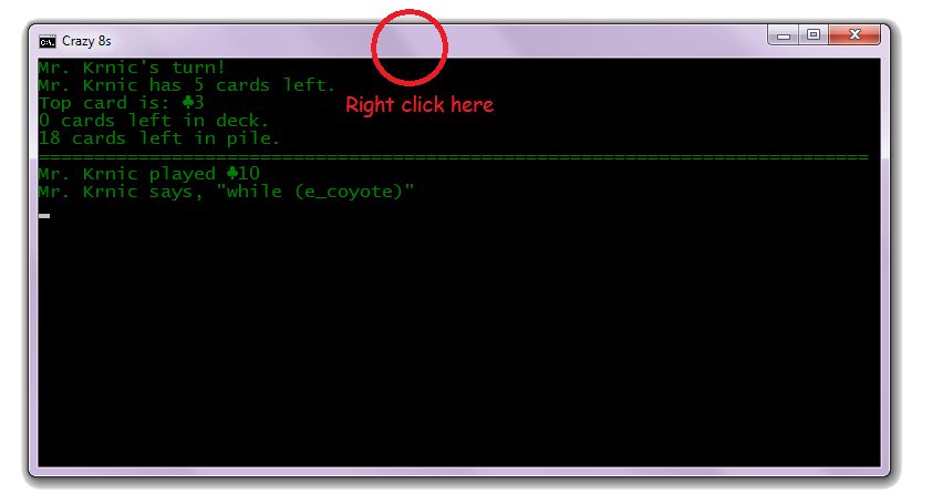 Right-click at the top of the console window